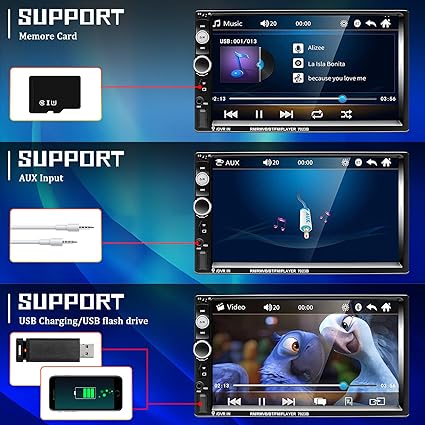 • ✽【Double Din Radio 】 High resolution, 1080P Full HD. 7″ inch 178*103*63mm LCD Touch screen offer you a fantastic experience to watch HD video. Please check the size of your car’s radio before ordering. FREE GIFTS: a back-up camera, install frame , remote control and Steering wheel control are included for free.